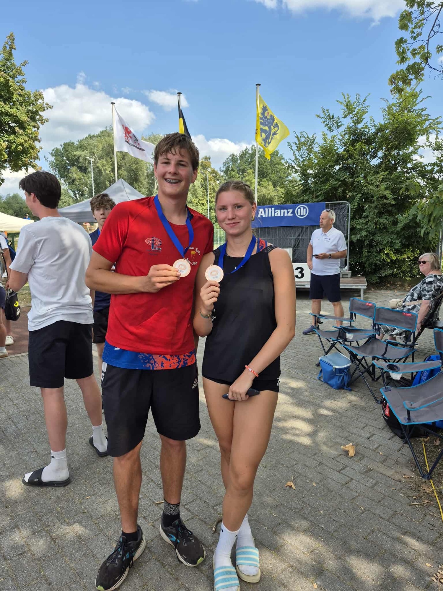 Ook bij onze tweedejaars scholieren Yenthe Vereecken en Camille De Clercq (ASVO) is er nog veel groeipotentieel. Voor Yenthe was het haar eerste selectie voor een Vlaams kampioenschap, en dat leek haar toch wat te imponeren. Ze werd twaalfde met 8m68. Camille, al wat meer ervaren, opende meteen met 12m30, goed voor een dik nieuw outdoor PR en clubrecord. Enkele worpen later deed ze er nog een centimetertje bij: 12m31, wat haar op een knappe zesde plaats bracht. In het speerwerpen pakte ze wél een medaille: brons, met een nieuw PR én CR van 40m58.