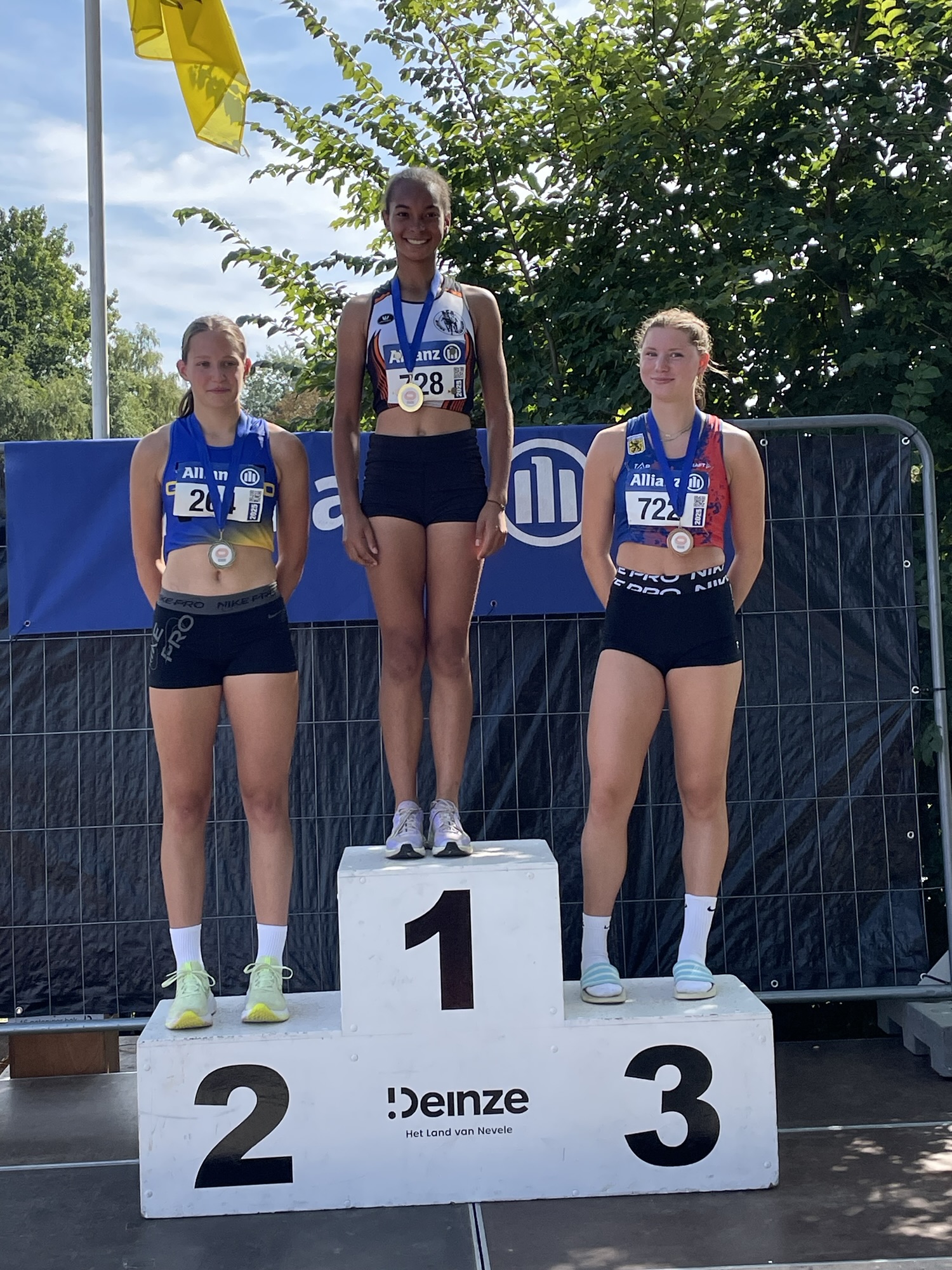 Ons overzicht beginnen we met eerstejaars cadet Esmee Magry. Esmee kende dit seizoen al heel wat blessurelast, maar wist zich telkens gemotiveerd terug te knokken. De laatste weken focuste ze als meerkampster wat meer op het kogelstoten, en dat zien we meteen in haar resultaten. Met 11m03 werd ze knap derde na een eerder moeizame wedstrijd. Ze mag supertrots zijn op dit resultaat en weet dat er nog heel wat progressie mogelijk is.