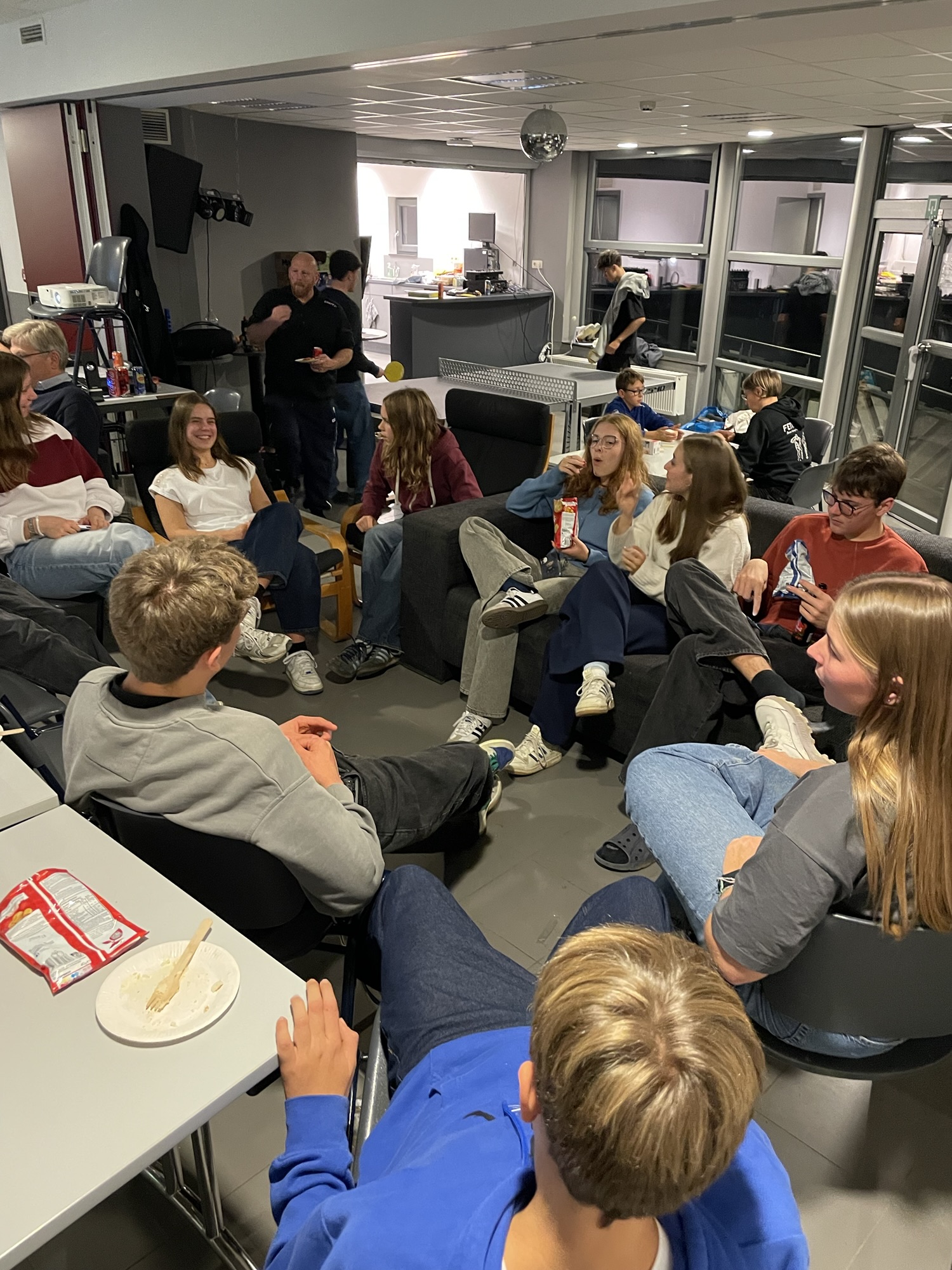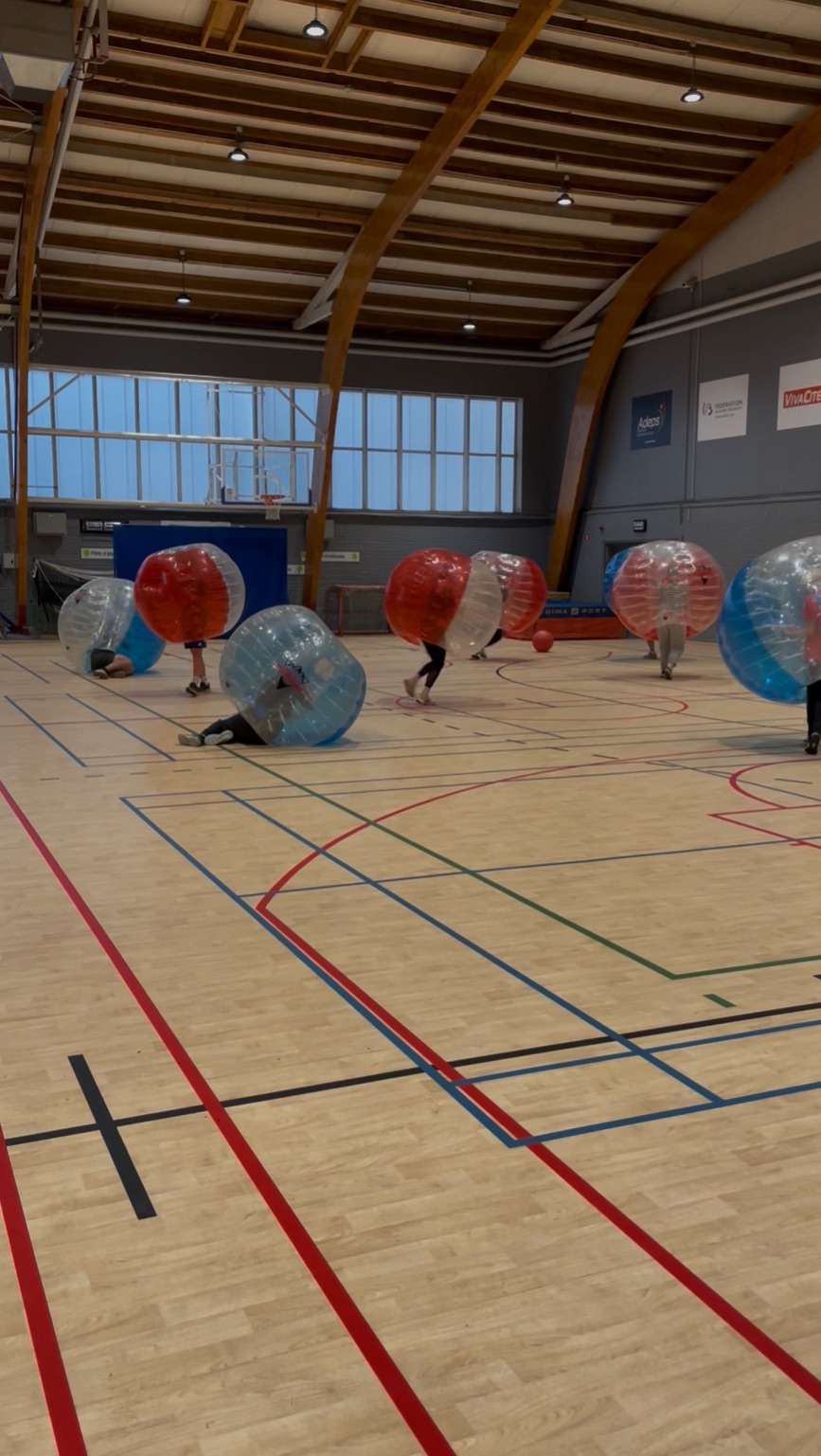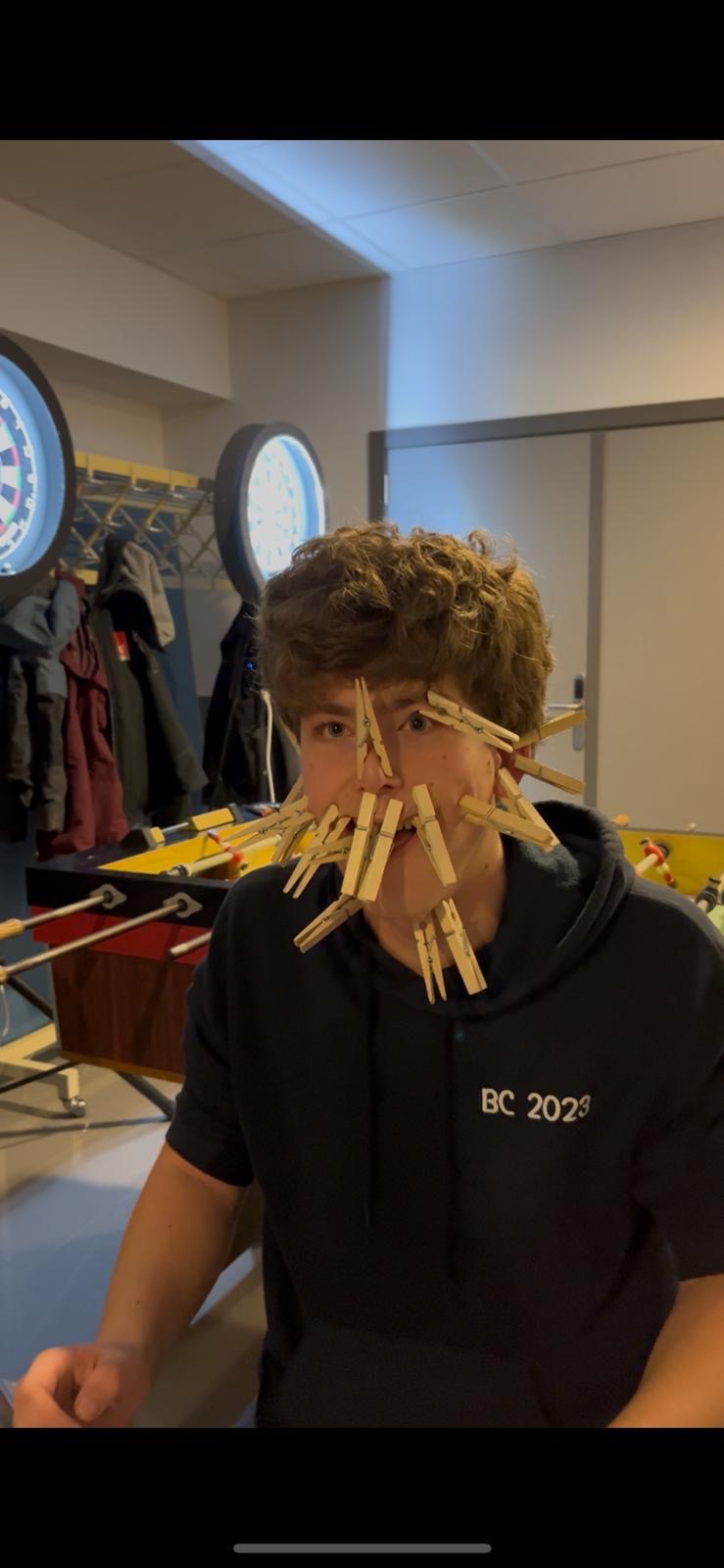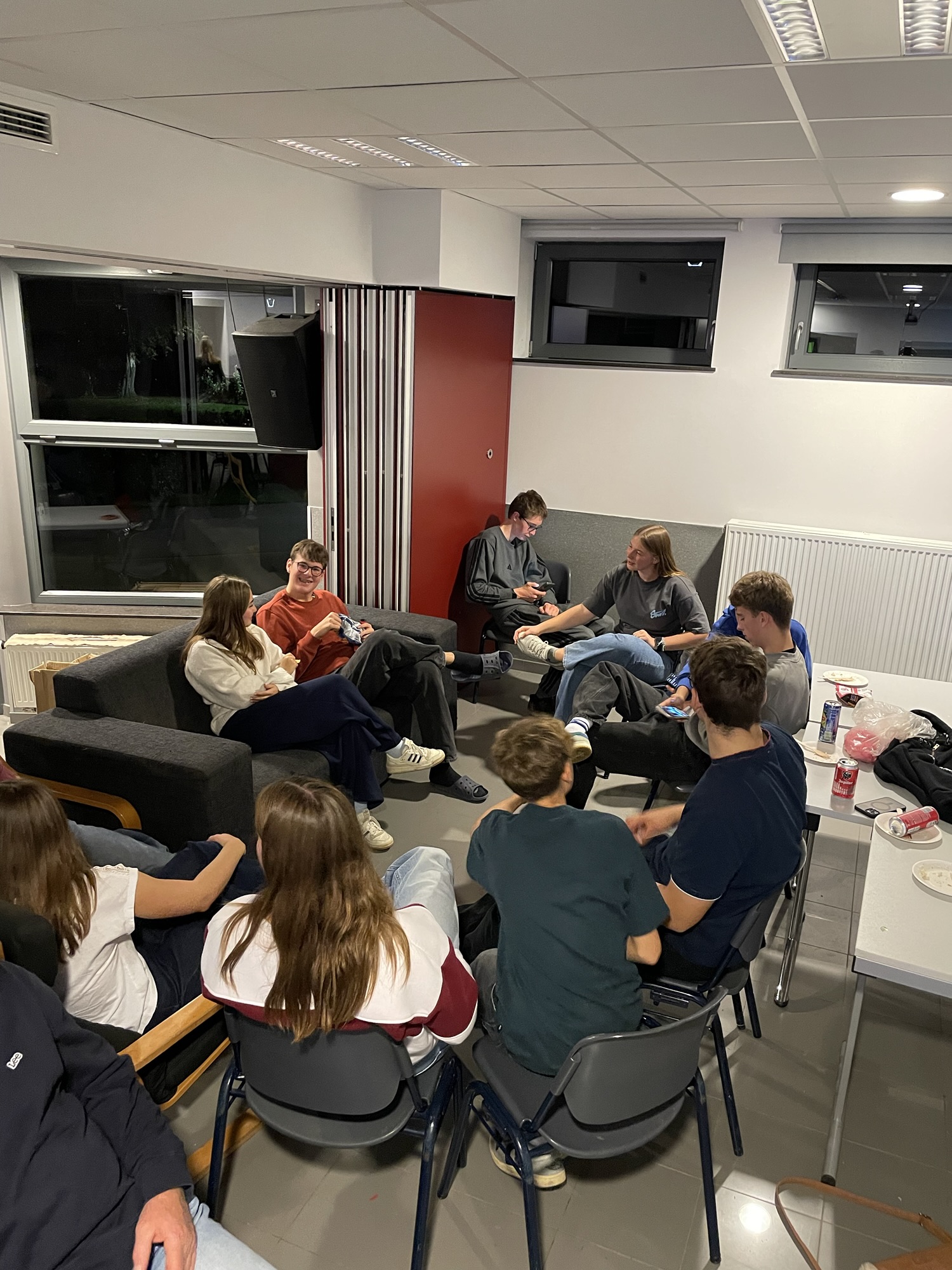 De dag begon met een stevig ontbijt, gelukkig was de power niet ver. Voor velen van de jongeren was het de eerste keer dat ze zich in de krachtzaal waagden. Ze konden al meteen een knap staaltje bankdrukken bewonderen. Cé en Robbe verpulverden maar weer eens hun pr. Robbe speelde met de 3 platen,Cé was 2 fast 2 furie en drukte 160 de lucht in. Kort erna moest iedereen stoppen met poweren want alle gewichten waren nodig bij de squad van Robbe. Daarna konden ook enkele van de jongeren zich wagen aan een PR. Een snelle middagmaaltijd was nodig om krachten op te doen voor de middagactiviteit. Door de weersomstandigheden trokken we de zaal in om te botsen, (sommige zelfs te vliegen). Filip had dit jaar bumperballen geregeld als activiteit, een verdacht goede cardiotraining. Helaas moest er wel een soldaat het slachtveld verlaten. Verder werden er nog een aantal mensen uit hun schoenen gekegeld maar de slachtoffers waren beperkt. Je zou denken dat de avond er wat rustiger aan toe ging maar Da was ni. De competitie dreef de spanning omhoog en er werden spelletjes gespeeld, matchen darts en kieker afgewerkt. De stoere binken bleven nog voor een horror film. Al bleek het gewoon een videocall met jumpscares. De film ‘Host’ krijgt van ons een dikke 3/10 BM.