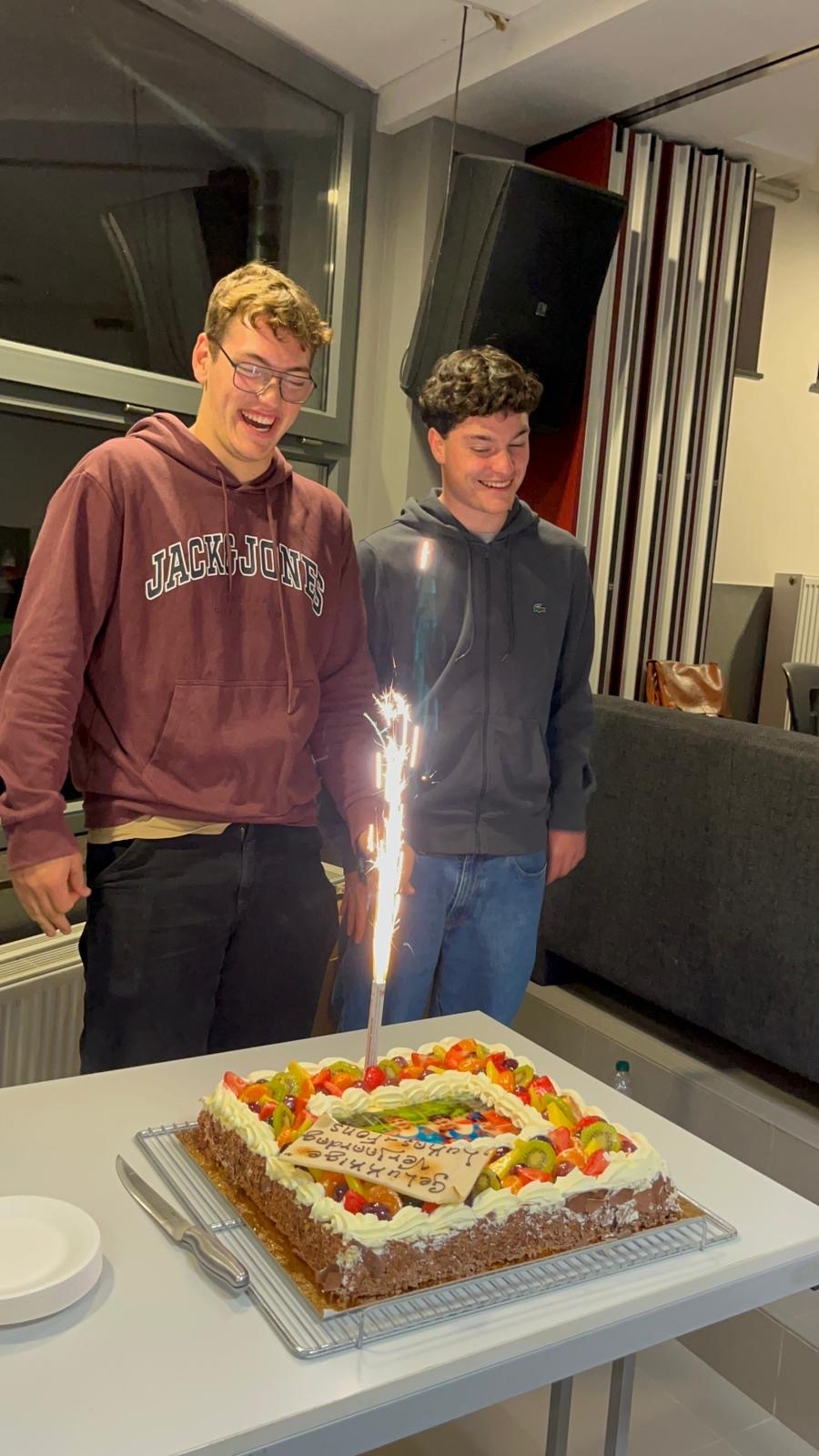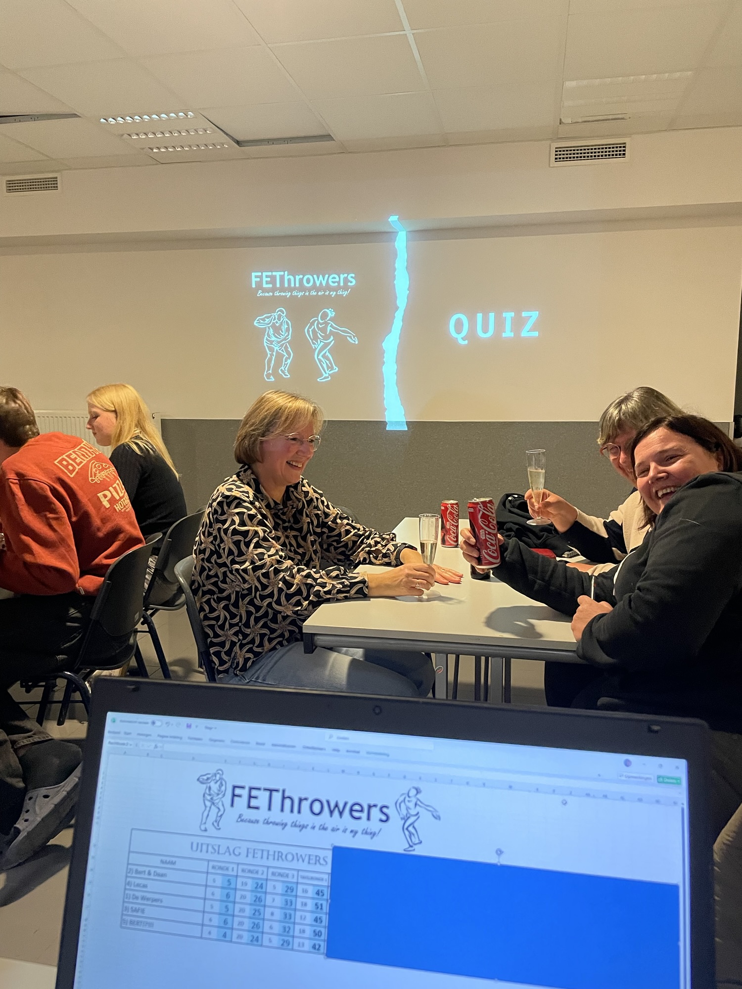 Na het eten begon de volgende training in het bos. Zoals gewoonlijk liepen we weer rechtdoor stijl de berg op met enkele valpartijen als gevolg. Daarna was het tijd voor de bostraining waar we wat functionele kracht deden en wat techniek, door op een unieke manier met takken te werpen. We sloten de dag af met een FETkwis van onze super trainer Filip. Als kers op de taart trakteerden Fons en Lukas voor hun verjaardag met jawel, een taart! Zoals verwacht won het team Lecas met als leden: Lowie, Esmee, Cédric, Annelies en Silke. Na de FETkwis kregen we van onze sponsors Solidaris en Vd tools respectievelijk een handdoek en een muts met bijpassende handschoenen. Van harte bedankt hiervoor!