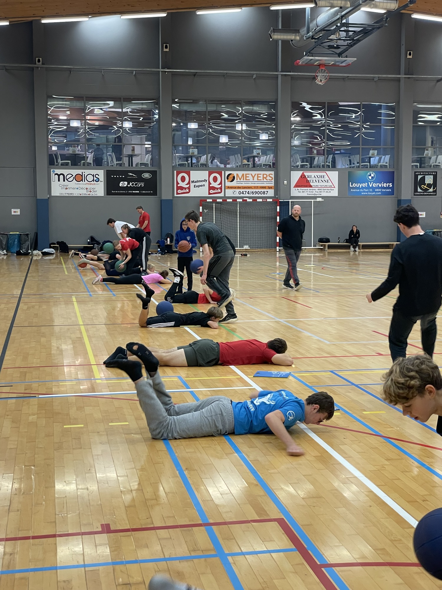 voormiddag : medecinebal training (focus buik/rug, romp)
