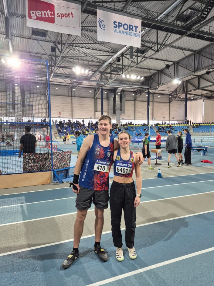 Bij de cadetten waren vervolgens Cyriel Van Hoey en Mats Bouche aan de beurt. Eerstejaars Cyriel groeide worp na worp in zijn wedstrijd en realiseerde uiteindelijk een knappe 7m77. Tweedejaars Mats begon wat moeizamer aan zijn wedstrijd met enkele ongeldige worpen, maar kon zijn wedstrijd alsnog op niveau afsluiten met een mooie 12m51.