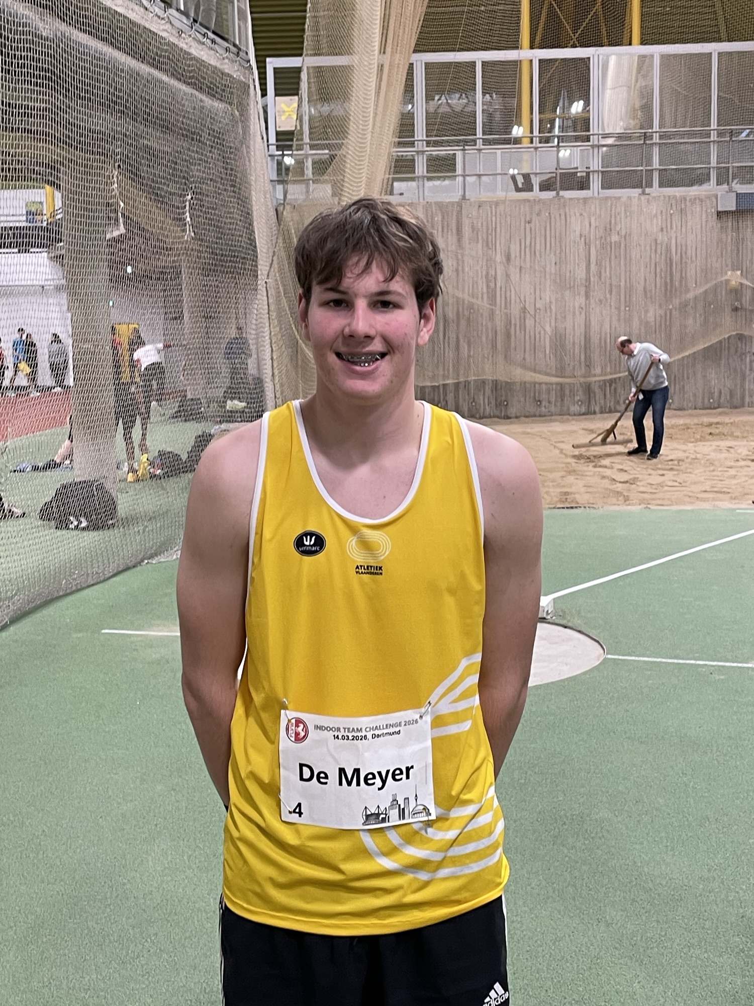 In de Helmut Körnig Halle in Dortmund mocht tweedejaars Lowie om 13u de spits afbijten in het kogelstoten. Met een klein hartje maar veel goede moed kwam hij na een moeizame wedstrijd tot 14m44, goed voor een 6de plaats. Niet meteen het verhoopte resultaat, maar daar zullen de zenuwen ongetwijfeld wel voor iets tussen hebben gezeten… En aan de andere resultaten te zien was hij niet de enige.