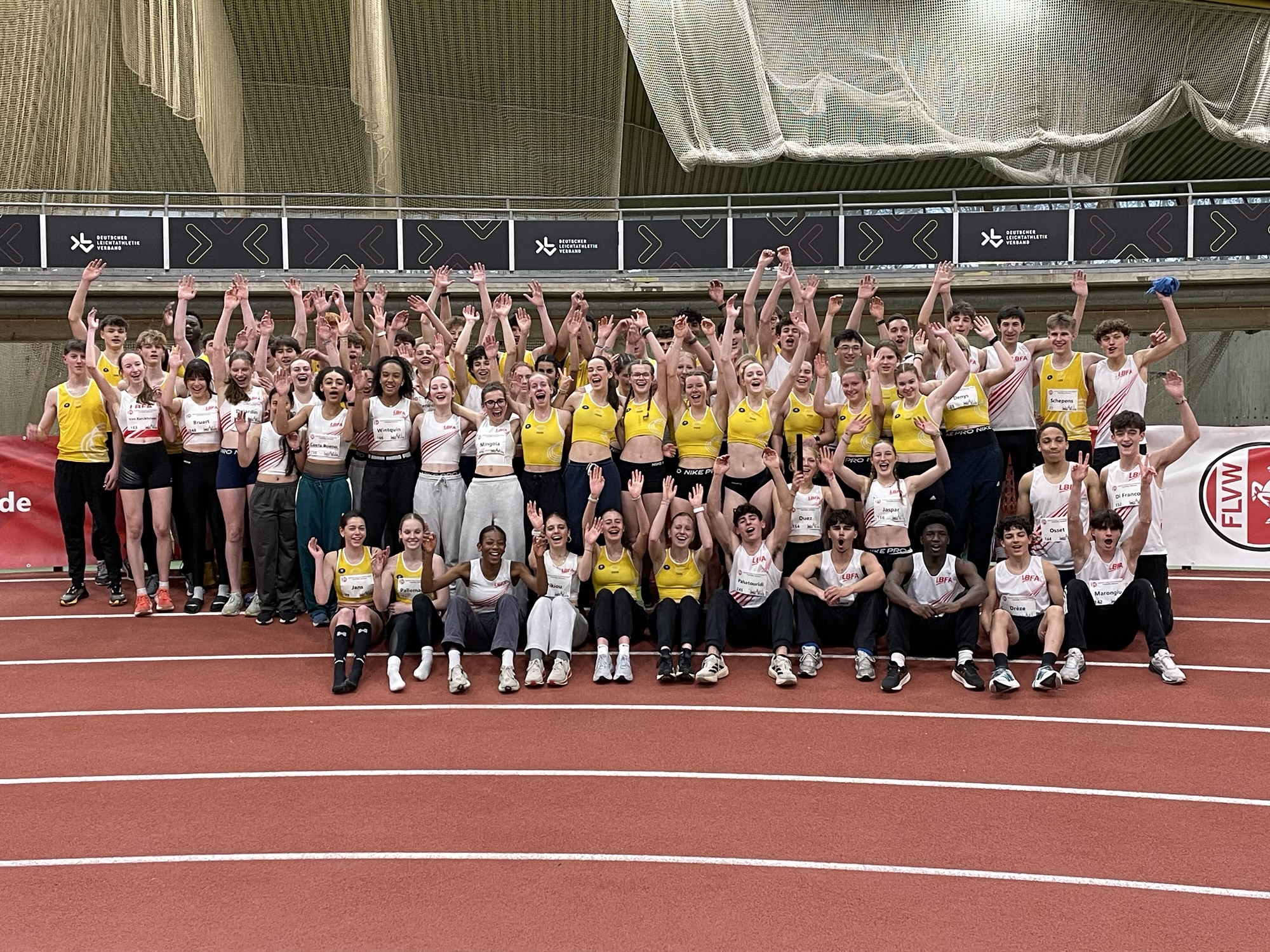 Als team behaalde Atletiek Vlaanderen een knappe tweede plaats: 36 punten achter het Nederlandse team en 63 punten voor het team van de LBFA. Achteraf verbroederden de Vlaamse atleten met onze Waalse vrienden (zie groepsfoto), wat de uitstekende sportieve sfeer van deze dag perfect weergeeft.