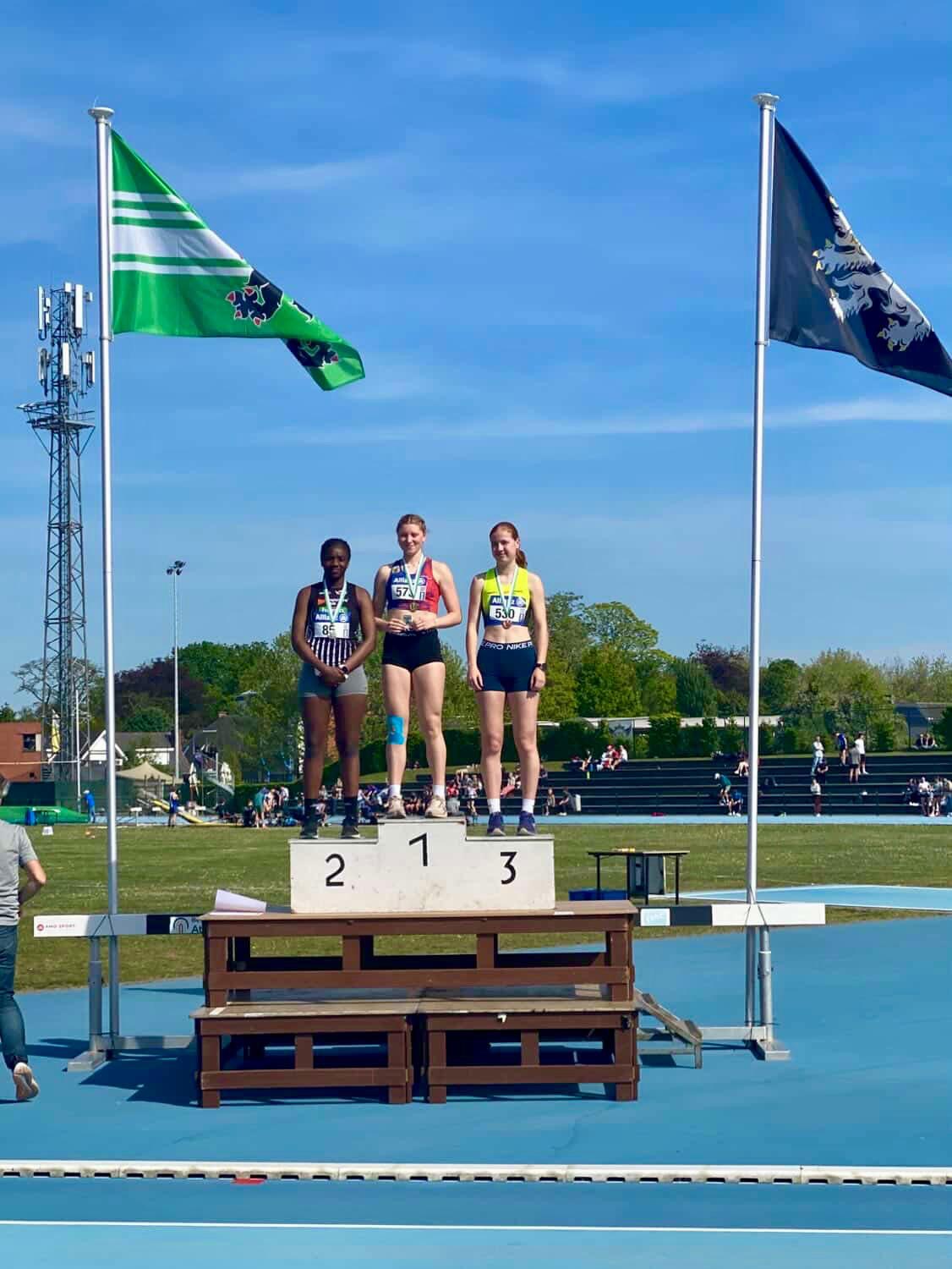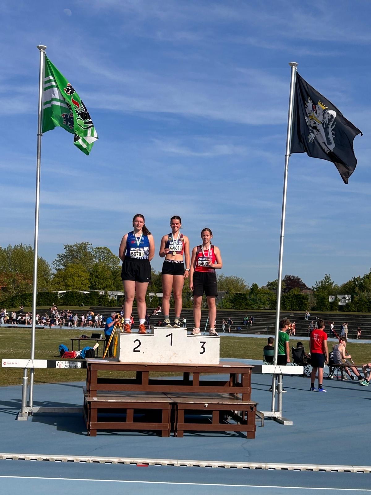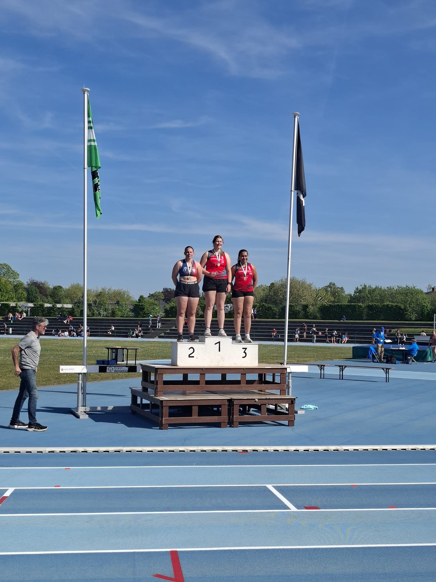 Vlak daarna zagen we Inge Eeckhout (BEL1), Lien Rubbrecht (SEN) en Loes De Meyer (JUN2) bij het kogelstoten. Inge werd 5de met 10m63. Lien pakte een knappe 3de plaats met 11m41 en Loes behaalde de 2de plaats met een afstand van 10m97 bij de juniores.