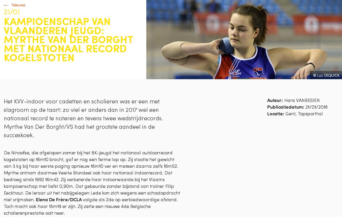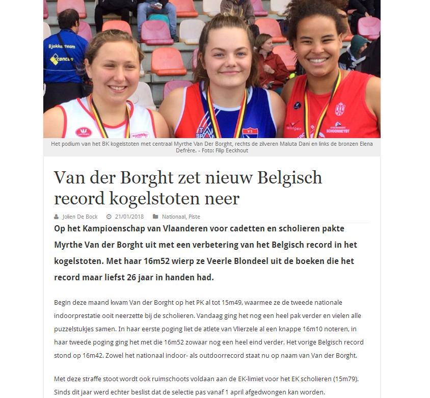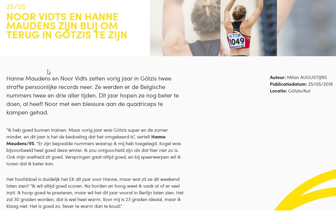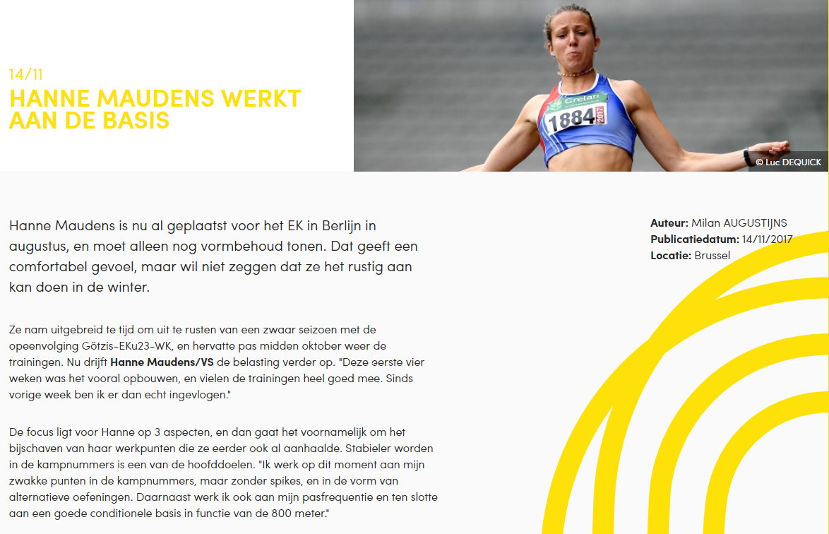 Myrthe Van der Borght – @tletiekleven – 29/10/2018Myrthe Van der Borght – Het Nieuwsblad – 17/10/2018Myrthe Van der Borght – Het Laatste Nieuws – 17/10/2018Myrthe Van der Borght – Het Nieuwsblad – 15/10/2018Myrthe Van der Borght – Het Laatste Nieuws – 10/10/2018Myrthe Van der Borght – Het Nieuwsblad – 05/10/2018Myrthe Van der Borght – Het Laatste Nieuwe – 12/09/2018Myrthe Van der Borght – @tletiekleven – 11/09/2018Myrthe Van der Borght – Het Nieuwsblad – 10/09/2018Myrthe Van der Borght – Het Laatste Nieuws – 06/09/2018Hanne Maudens – @tletiekleven – 29/08/2018Myrthe Van der Borght – @tletiekleven – 21/08/2018Hanne Maudens – Het Laatste Nieuws – 10/08/2018Hanne Maudens – Het Laatste Nieuws – 07/08/2018Myrthe Van der Borght – @tletiekleven – 13/07/2018Myrthe Van der Borght – Het Laatste Nieuws – 09/07/2018Myrthe Van der Borght – Het Nieuwsblad – 09/07/2018Myrthe Van der Borght – lbfa.be – 08/07/2018Myrthe Van der Borght – atletiek.be – 07/07/2018Myrthe Van der Borght – Het Nieuwsblad – 07/07/2018Myrthe Van der Borght – altletiek.be – 06/07/2018Myrthe Van der Borght – Het Nieuwsblad – 05/07/2018Myrthe Van der Borght – Het Laatste Nieuws – 04/07/2018Filip Eeckhout & Davy Uyttenhove – Het Nieuwsblad – 02/07/2018Filip Eeckhout – atletiek.be – 01/07/2018Hanne Maudens – Het Laatste Nieuws – 29/06/2018Filip Eeckhout – Het Laatste Nieuws – 15/06/2018Hanne Maudens – Het Laatste Nieuws – 28/05/2018Hanne Maudens – Het Nieuwsblad – 28/05/2018Hanne Maudens – Het Nieuwsblad – 28/05/2018Hanne Maudens – atletiek.be – 25/05/2018Myrthe Van der Borght – Het Laaste Nieuws – 22/05/2018Myrthe Van der Borght – Het Nieuwsblad – 22/05/2018Myrthe Van der Borght – atletiek.be – 20/05/2018Myrthe Van der Borght – Het Laatste Nieuws – 09/05/2018Myrthe Van der Borght & Febe Vandewalle – @tletiekleven – 08/05/2018Myrthe Van der Borght – @tletiekleven – 04/05/2018Myrthe Van der Borght – @tletiekleven – 14/03/2018Myrthe Van der Borght – Het Laatste Nieuws – 07/03/2018Myrthe Van der Borght – Het Nieuwsblad – 22/02/2018Myrthe Van der Borght – @tletiekleven – 01/02/2018Myrthe Van der Borght – @letiekleven – 25/01/2018Myrthe Van der Borght – Het Nieuwsblad – 23/01/2017Myrthe Van der Borght – Het Laatste Nieuws – 22/01/2018Myrthe Van der Borght – Het Nieuwsblad – 22/01/2018Myrthe Van der Borght – atni.be – 21/01/2018Myrthe Van der Borght – atletiek.be – 21/01/2018Myrthe Van der Borght – Het Laatste Nieuws – 18/01/2018Myrthe Van der Borght – Het Nieuwsblad – 11/01/2018Hanne Maudens – Daeninck Magazine – Herfst/Winter 2017Hanne Maudens – atletiek.be – 14/11/2017