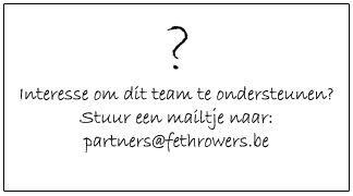 Ondersteuning (materiaal, kledij,… ) is natuurlijk altijd welkom. Geïnteresseerd?Stuur een mailtje naar: partners@fethrowers.be
