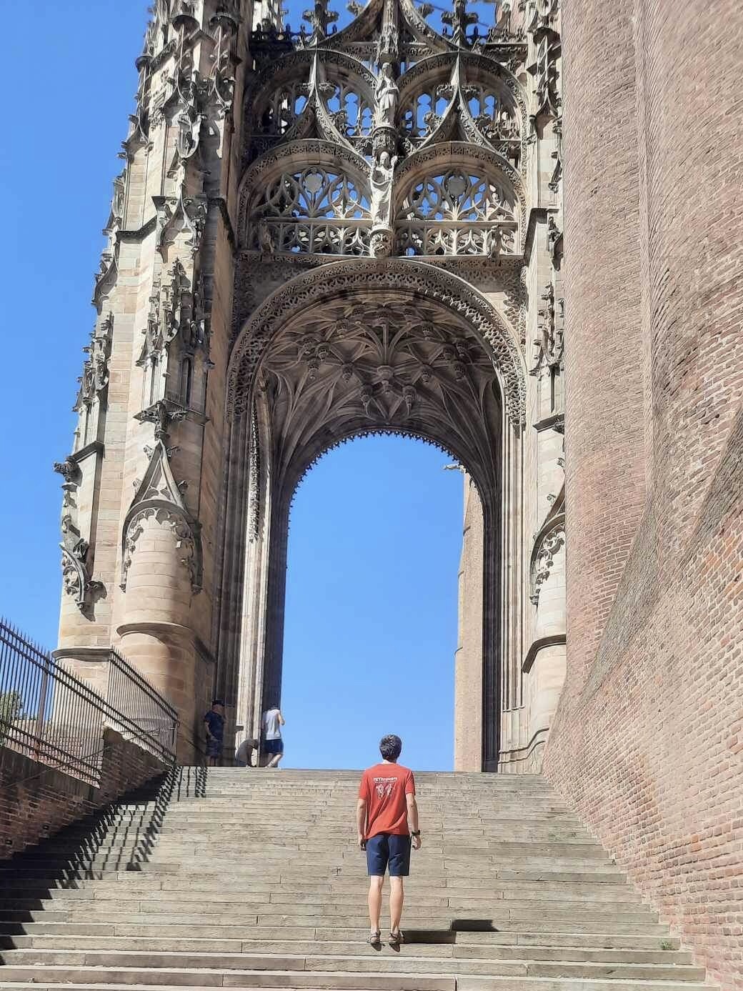 48. FRANKRIJK => De Kathedraal Sainte-Cécile is het belangrijkste religieuze bouwwerk in de stad Albi in het zuiden van Frankrijk. Het is de zetel van de aartsbisschop van Albi. Het kerkgebouw, een van de grootste bakstenen gebouwen in Europa, is gewijd aan de heilige Cecilia. De kathedraal werd gebouwd tussen 1282 en 1480 in de nasleep van de – vanuit katholiek gezichtspunt – Albigenzische ketterij van de katharen en de kruistocht daartegen. Wikipedia