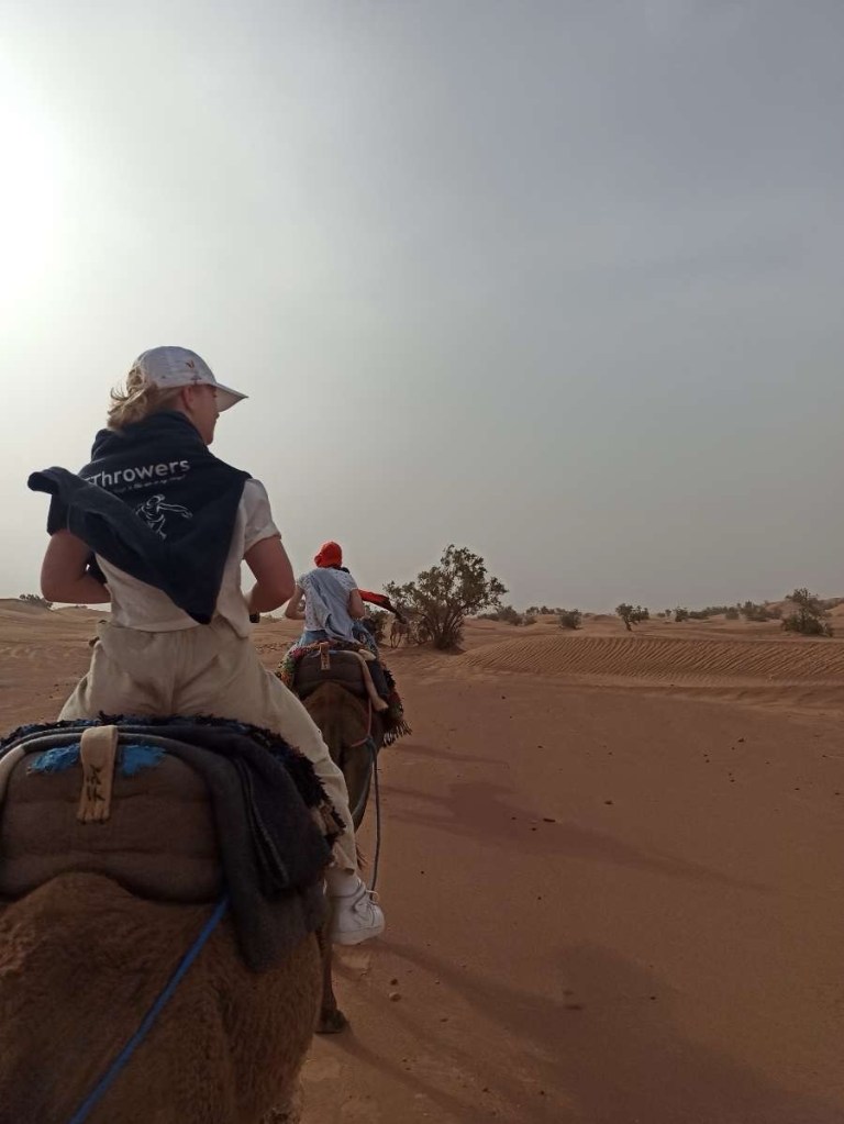 58. MAROKKO => De Sahara is de grootste woestijn op aarde. Deze is gelegen in Noord-Afrika en beslaat ongeveer 31% van het continent. De naam Sahara is afgeleid van het Arabische woord sahra, dat woestijn in algemene zin betekent. De Sahara strekt zich uit van de Westelijke Sahara aan de Atlantische Oceaan tot in Egypte aan de Rode Zee. Aan de noordzijde wordt ze begrensd door de Middellandse Zee en het Atlasgebergte. De zuidzijde wordt gevormd door de Sahel, een gebied dat enigszins begroeid is. Wikipedia