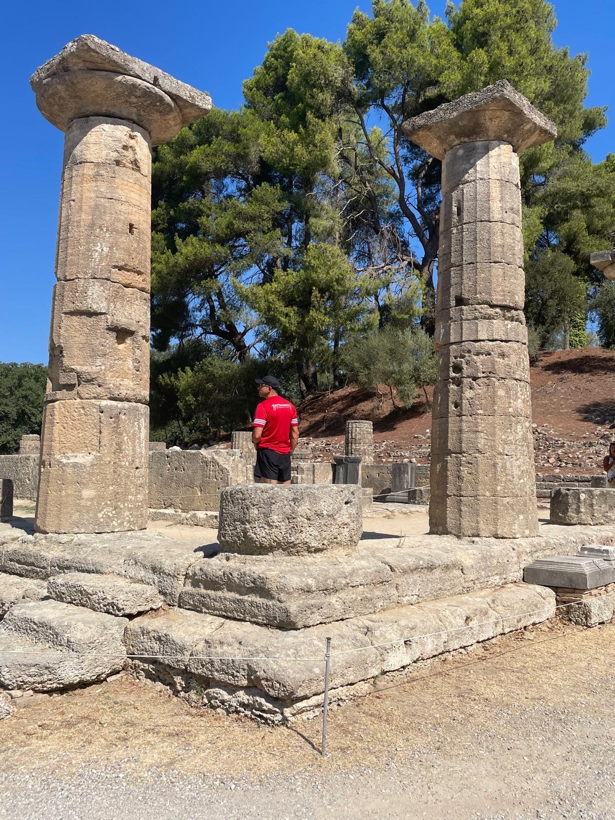 78. GRIEKENLAND => Olympia is een uitgestrekt opgravingsveld in Griekenland, op de plaats waar om de vier jaar de Olympische Spelen in de klassieke oudheid werden gehouden. Het oude heiligdom was aan Zeus gewijd. Een echte stad was Olympia niet. De enige vaste bewoners waren priesters en verder tempelpersoneel, zoals koks, hout- en metaalbewerkers en gidsen om bezoekers rond te leiden. Wikipedia